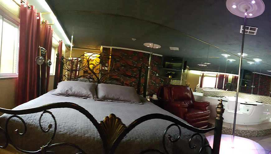 La plus grande chambre de l'hôtel et la seule au troisième étage, le Penthouse Chomedey Inn vous offre un salon et une salle de fête. Le salon dispose d'un grand canapé pouvant accueillir 4 personnes, un téléviseur de 50 "et une petite terrasse pour profiter d'être sur le dessus du bâtiment. La chambre à coucher contient un lit « king size », un téléviseur 42 pouces, un grand jacuzzi et un poteau de danse pour compléter la pièce.
