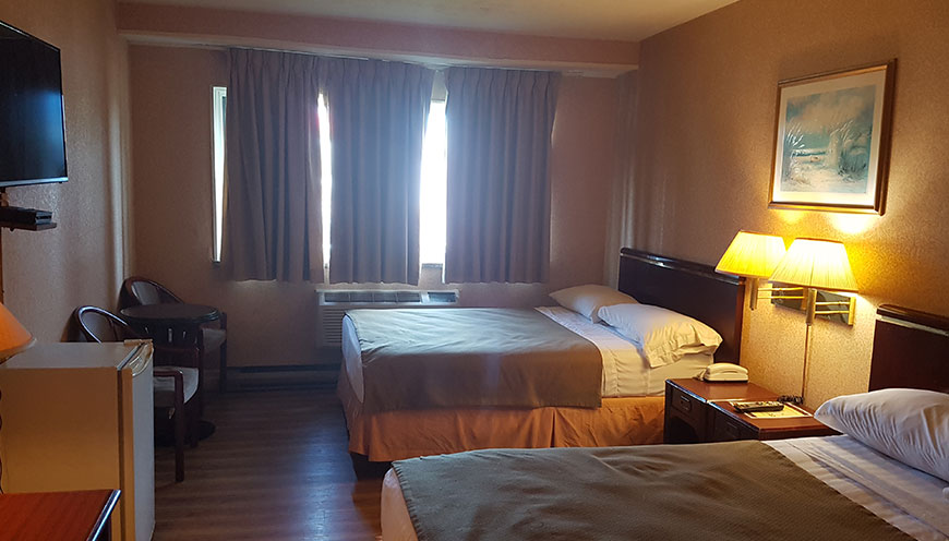 À un prix incroyable et adapté à 4 personnes, toutes les chambres à deux lits doubles incluent un réfrigérateur, un bureau, un placard, des commodes et un téléviseur HD de 42 pouces pour rendre votre séjour court ou long aussi confortable que possible. Si vous souhaitez un balcon face à la rue principale, Curé-Labelle, veuillez le mentionner lors de la réservation. Chambres fumeurs et non-fumeurs disponibles.